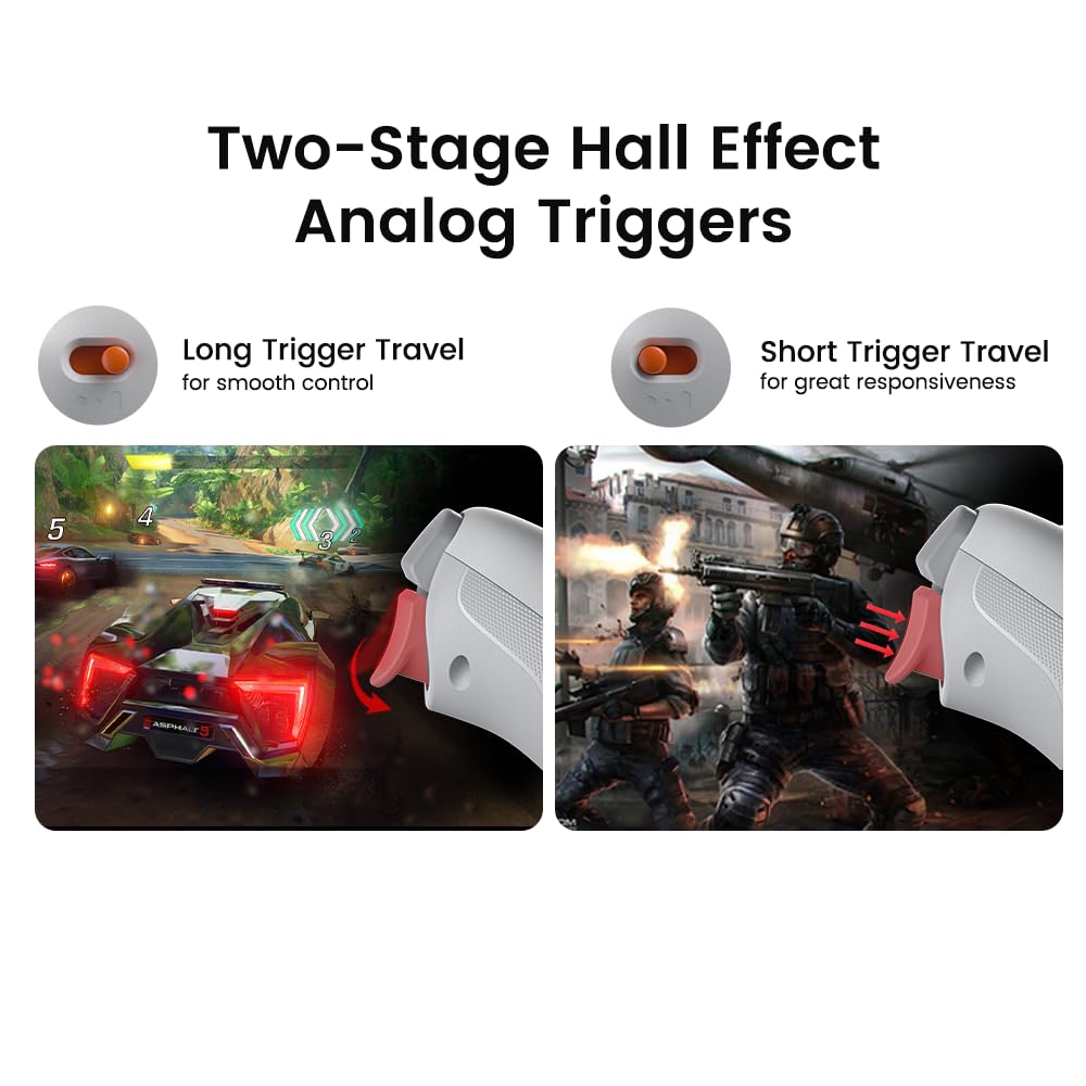 • Joysticks de Efecto Hall: Ofrecen un rendimiento de recentrado mejorado para un control más suave y una capacidad antideriva superior. Además, con anillos antifricción.